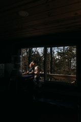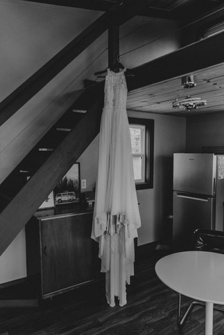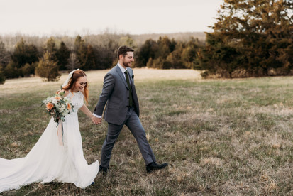 These two started off in the treehouse at Juniper Gardens in Fair Grove, MO. It's a perfect intimate setting. It offers a lofted bedroom, a small kitchenette and a couple mirrors to get ready. They were able to hang out, laugh, write vows, & get ready together. To keep it small and simple- the dress was purchased through Facebook Marketplace, the suit was reused from a previous wedding, and the vow books & hair bow were purchased on Amazon.